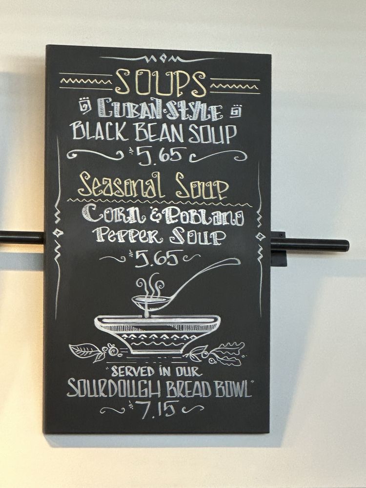 A hearty, sweet corn soup slow-cooked with potato and roasted poblano pepper. Finished with cotija cheese, corn and cilantro salsa, and jalape-o slices. Served with a toasted slice of Porto's sourdough baguette.